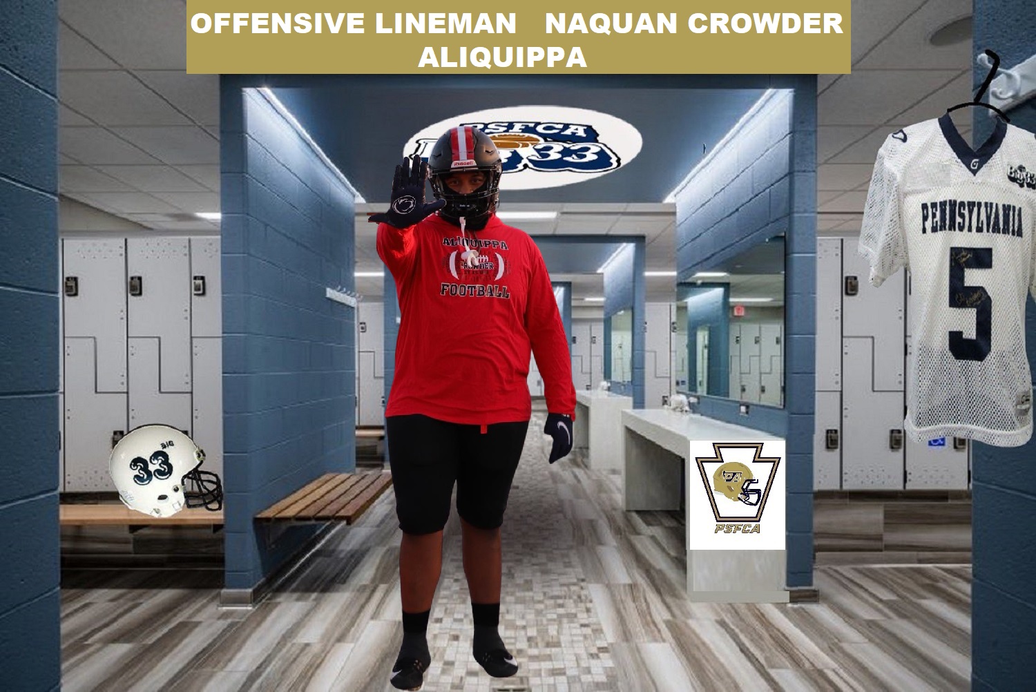| OL | 6′ 4″ | 340 | Naquan | Crowder | Aliquippa | University of California (PA) |